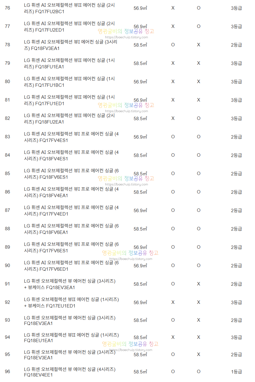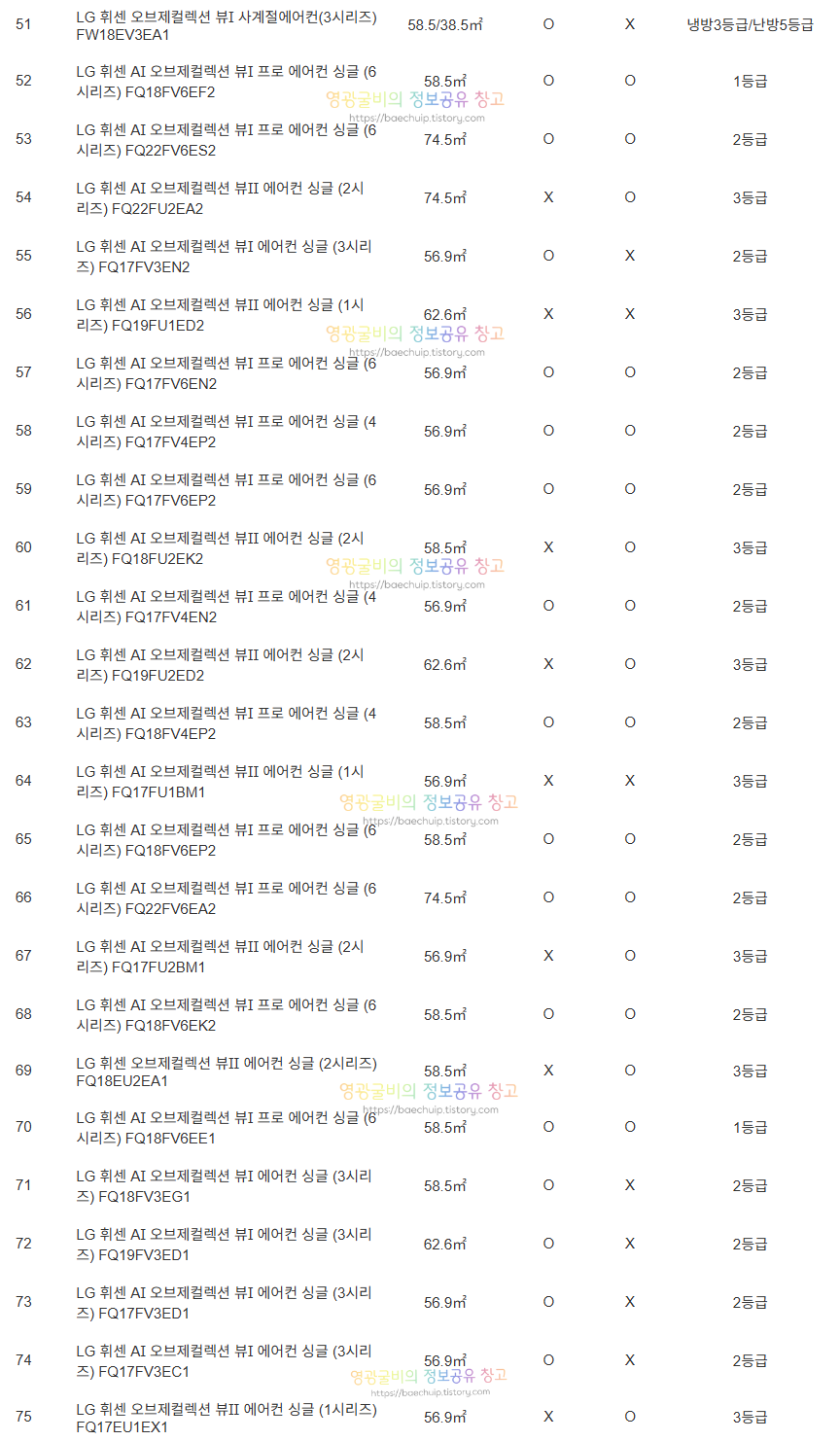 💡 LG 휘센 뷰 시리즈별 모델 상세 비교 (1~96번)
