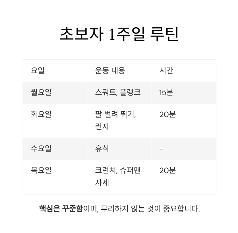 초보자용 운동 루틴 구성 예시