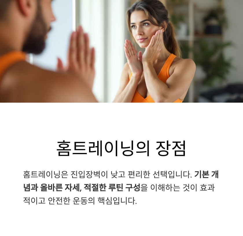 처음 운동을 시작하려는 분들께 홈트레이닝은 진입장벽이 낮고 편리한 선택입니다.