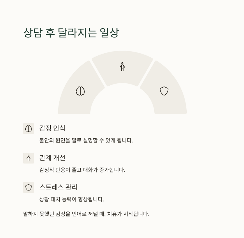 상담 과정은 점진적이지만 깊이 있는 자기 이해를 가능하게 합니다.