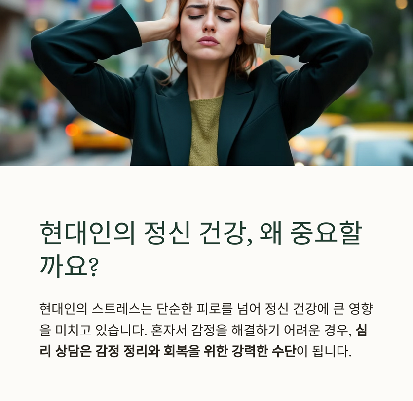 현대인의 스트레스는 단순한 피로를 넘어 정신 건강에 큰 영향을 미치고 있습니다.